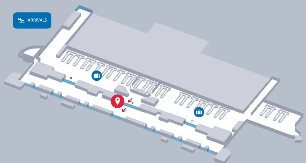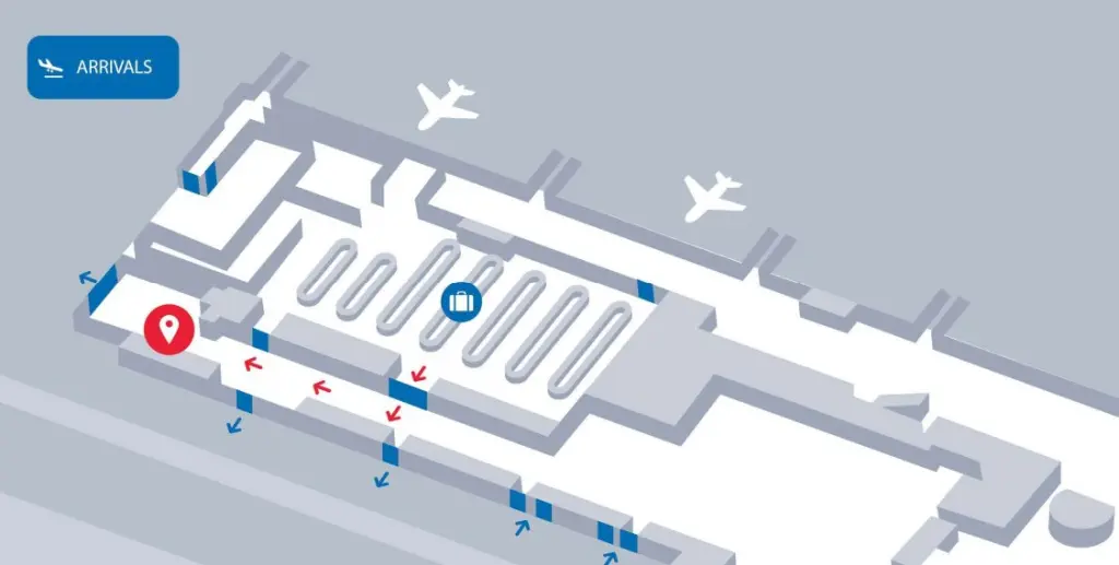 1. После прохождения паспортного контроля и получения багажа, Вы выходите в зал прибытия;