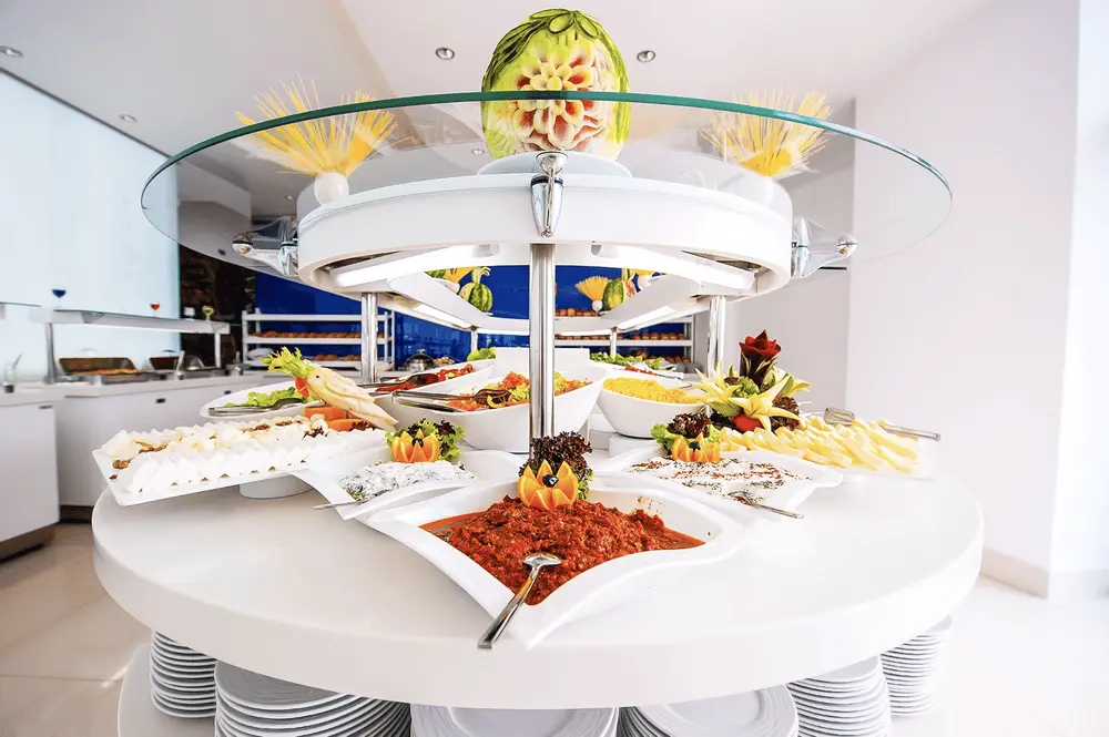 В концепцию входит: завтрак, обед - шведский стол с основном ресторане, закуски на пляже и у бассейна, ужин - шведский стол в основном ресторане или в a`la carte ресторане (при проживании от 5 дней 3 бесплатных ресторана на выбор, по предварительному бронированию), кофе и чай в определенное время, ночной перекус (бар On The Grill 00.00-01.00 и бар Лагуна 01.00-07.00), местные алкогольные и безалкогольные напитки. Доступно диетическое, вегетарианское, безлактозное и безглютеновое меню.