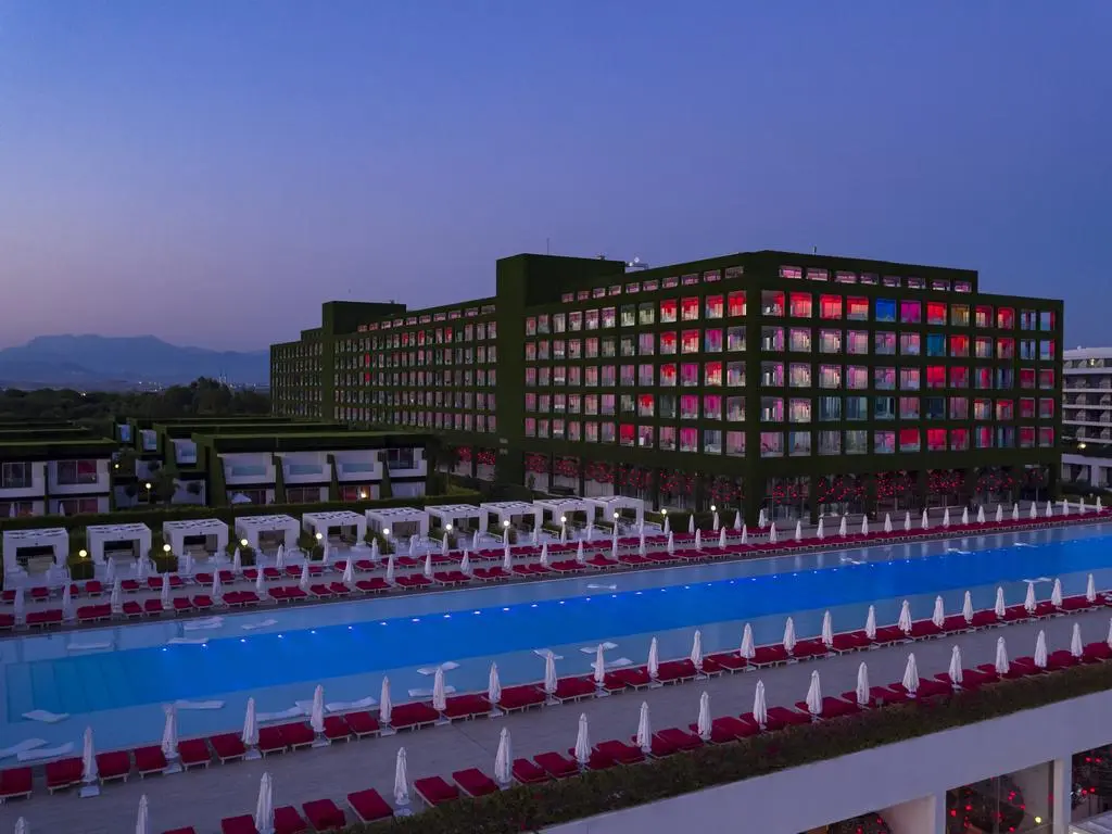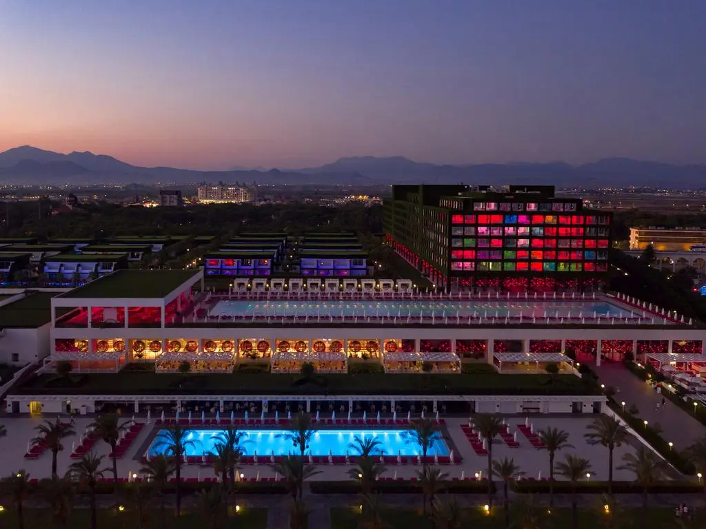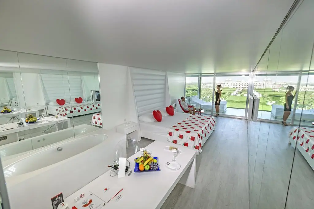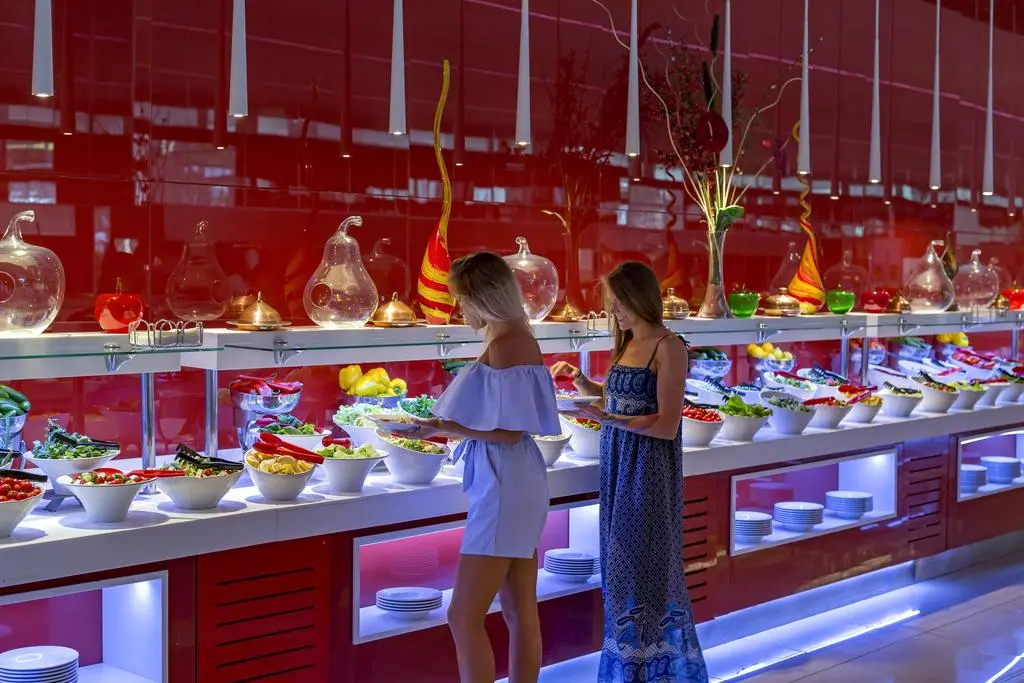 - Рестораны a la carte: 7 (турецкий, рыбный, итальянский – плата за резервацию; steak house, суши, афродизиак, ресторан Blind (ужин в темноте) – по предварительной записи, платно, по меню, открыты попеременно)