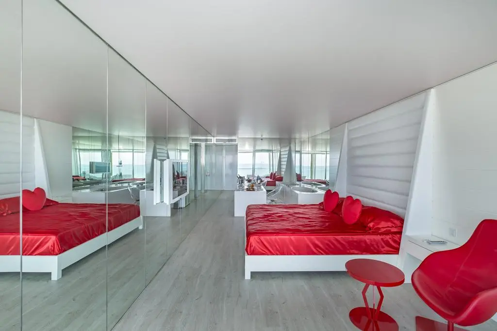 2 четырехкомнатных King suite (гостиная, 3 спальни, бар, сауна, 2 ванные комнаты, большая терраса (192 м2), макс. 6 чел., 500 м2).
