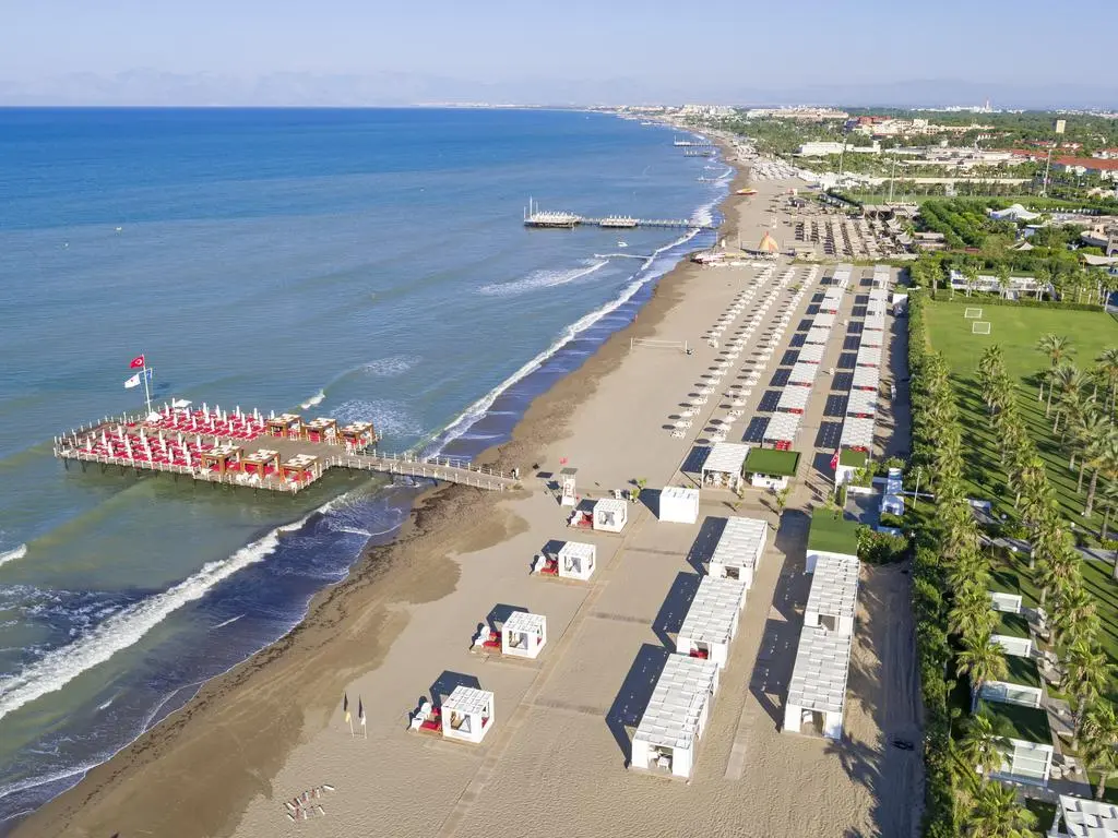 в 35 км от аэропорта, в 45 км от центра г. Анталья, в 1 км от центра г. Белек, на берегу моря.