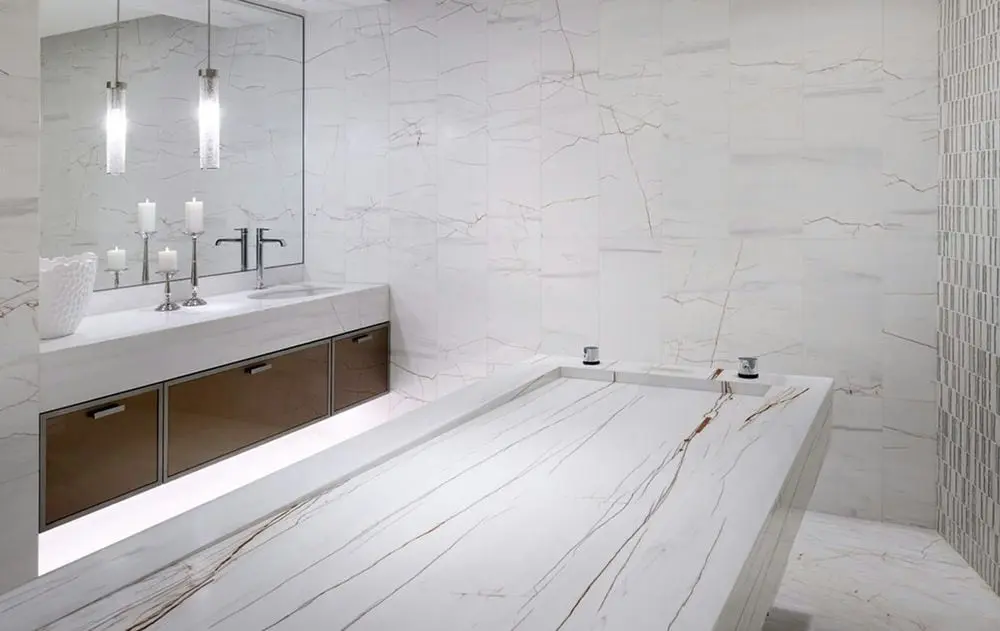 - ванная комната с ванной, тропическим душем и двойной раковиной