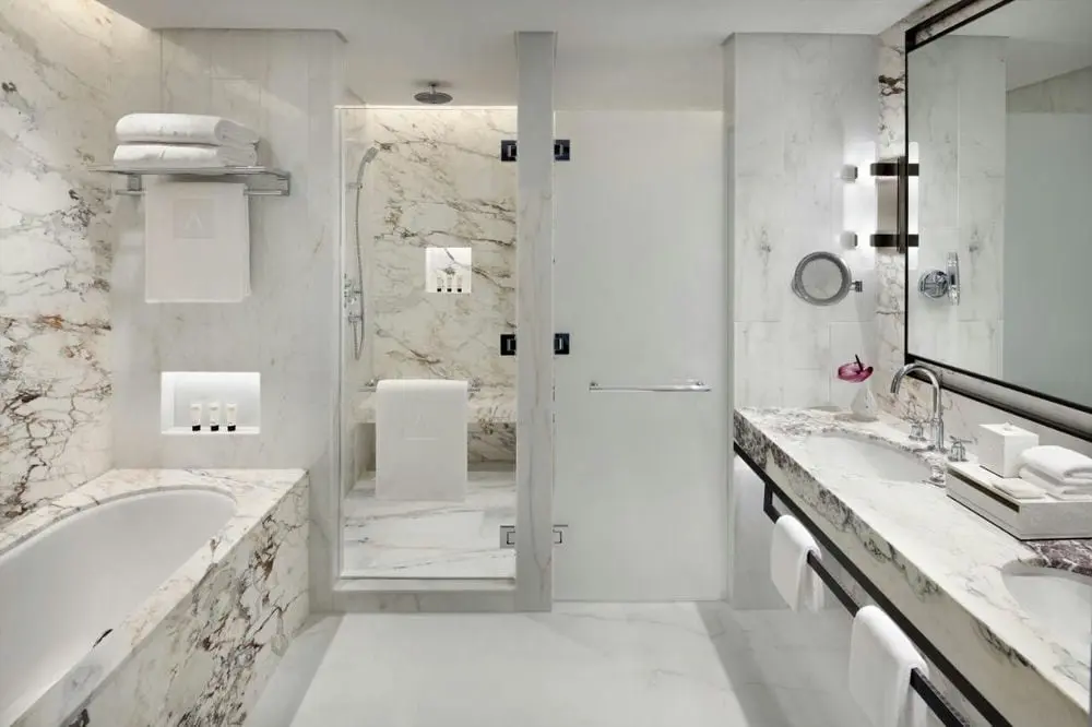 Отель расположен в 63-этажном здании с 7 по 12 этажи. Всего 220 номеров и люксов.