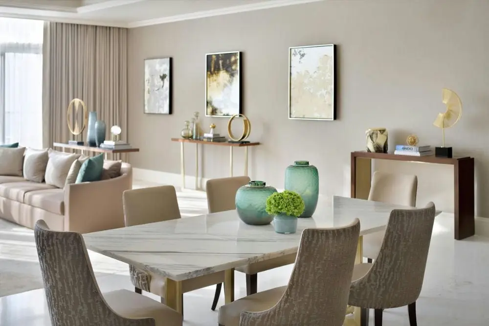 Executive Suite (140 м², вид на Бурдж-Халифа и фонтан, гостиная с диваном-кроватью, спальня с двуспальной кроватью, обеденная зона, макс. 3+1 / 2+2 чел., доступ в клубный лаундж).