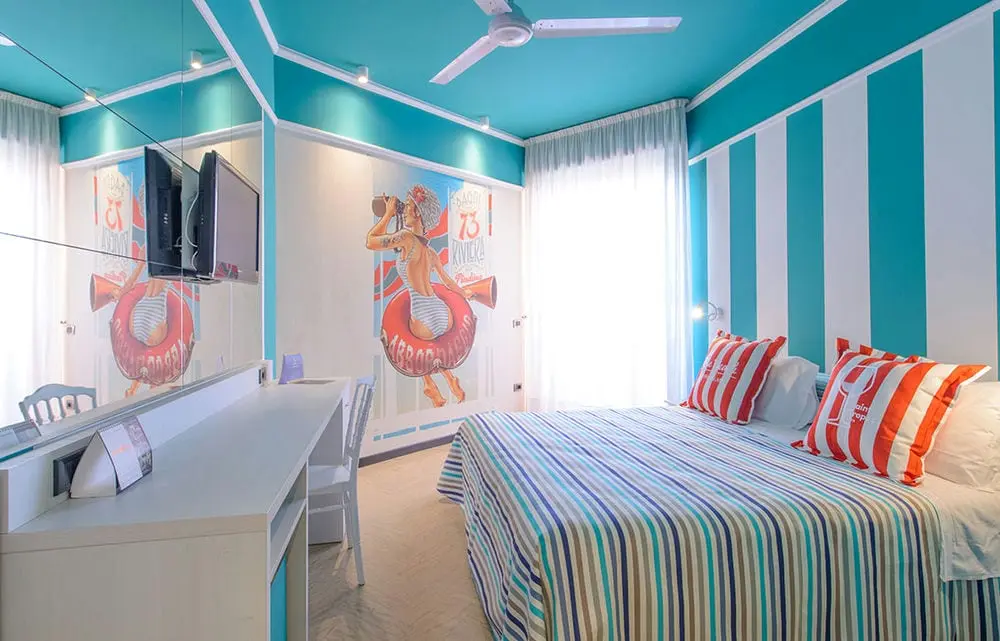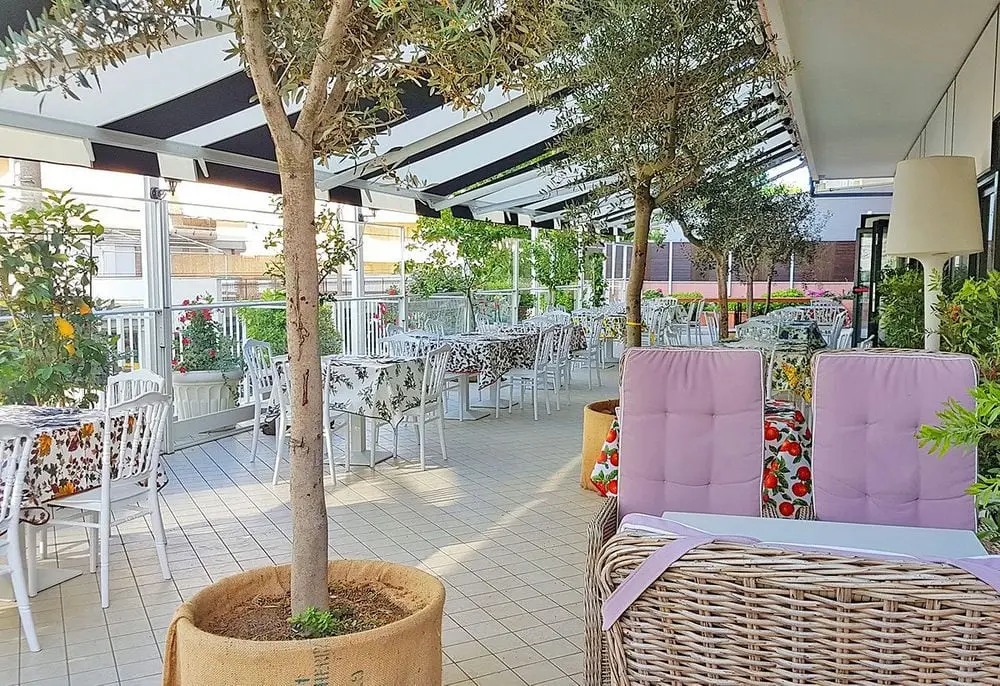 Ресторан Cage Club (завтрак «шведский стол» с 7:30 до 10:00) - на 1 этаже отеля, итальянская и интернациональная кухня, детокс-напитки, кофейный уголок, дизайн разработан всемирно известным архитектором Лукой Таусани Феррини, есть большая и светлая терраса с видом на море, на сцене установлено пианино, проводятся музыкальные шоу и различные мероприятия.