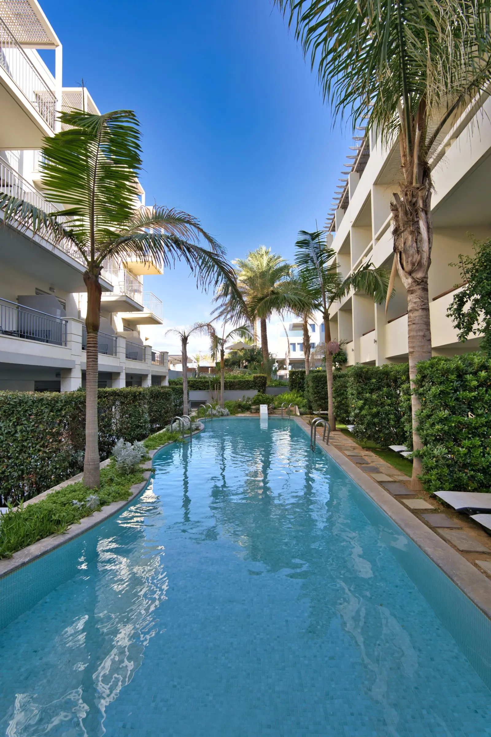 - Двухместные номера с частным бассейном – предлагают просторную террасу и индивидуальный бассейн с видом на море.