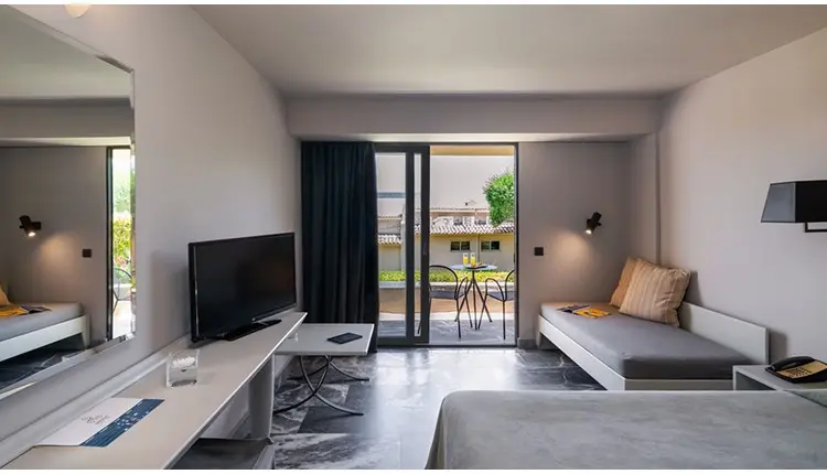 - Стандартные номера – уютные комнаты с современным дизайном, рассчитанные на 2-3 человек, с балконом или террасой, видом на сад или море.