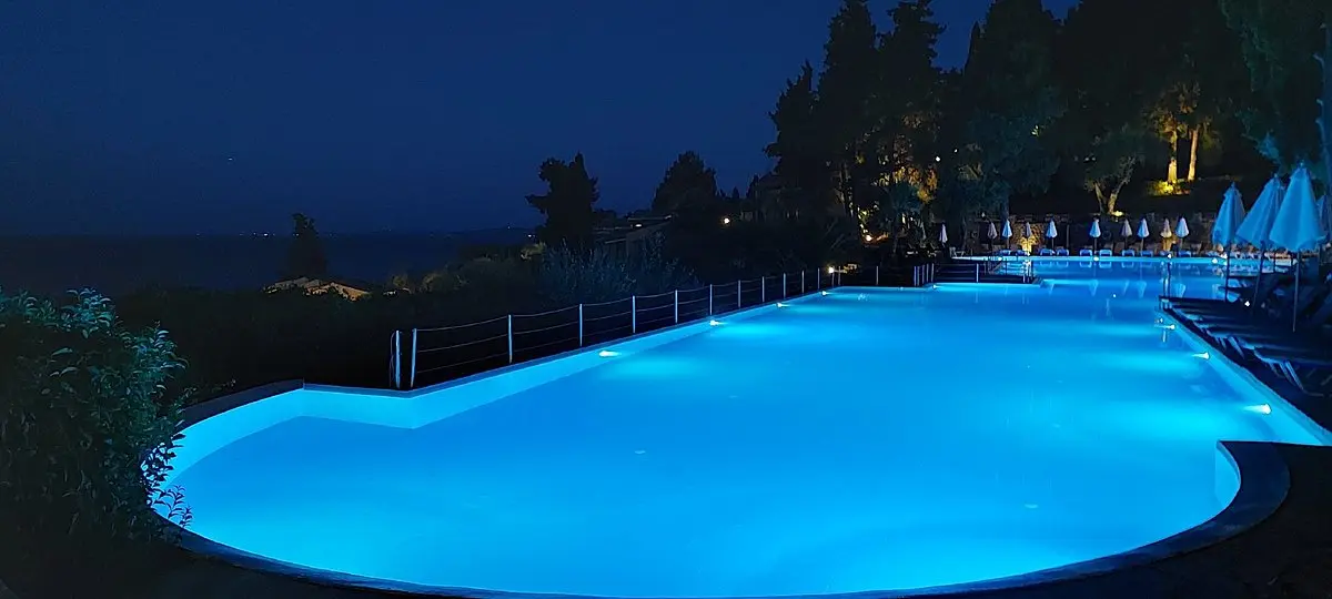 - Зона отдыха у бассейнов с шезлонгами и барами