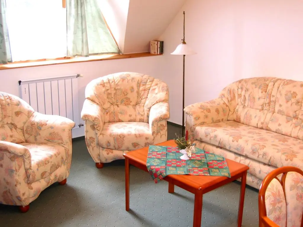 - Appartement площадь 46,5 кв. м, две комнаты, в спальне находится французская кровать, в гостиной – диван-кровать; идеально подходит не более чем для двоих взрослых и двоих детей или для троих взрослых. В номерах телевизор, телефон, сейф, кухонный уголок, холодильник, ванная с душевой кабиной, туалет, балкон.