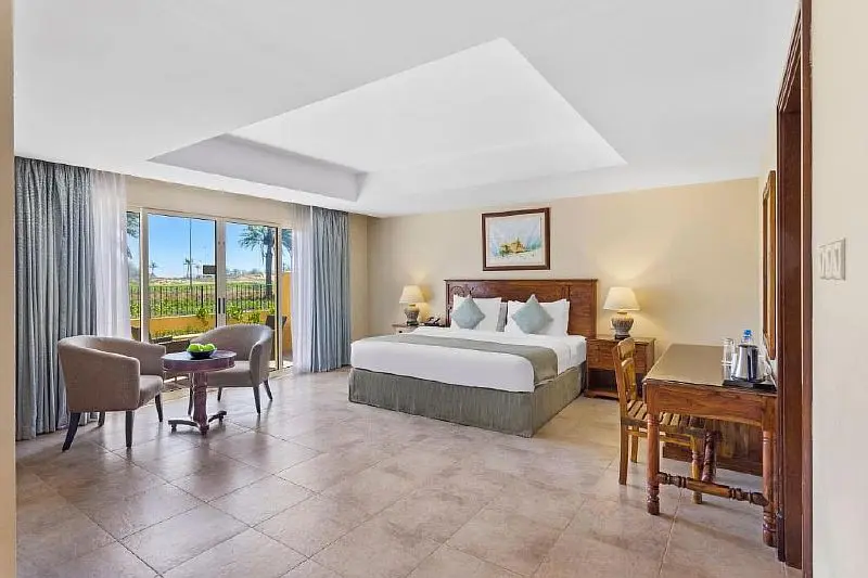 - Junior Suite - спальня, гостиная, двуспальная кровать, терраса, прямой выход к бассейну и саду или гольф-полю, макс. 3 или 2+2 чел., 81 м2