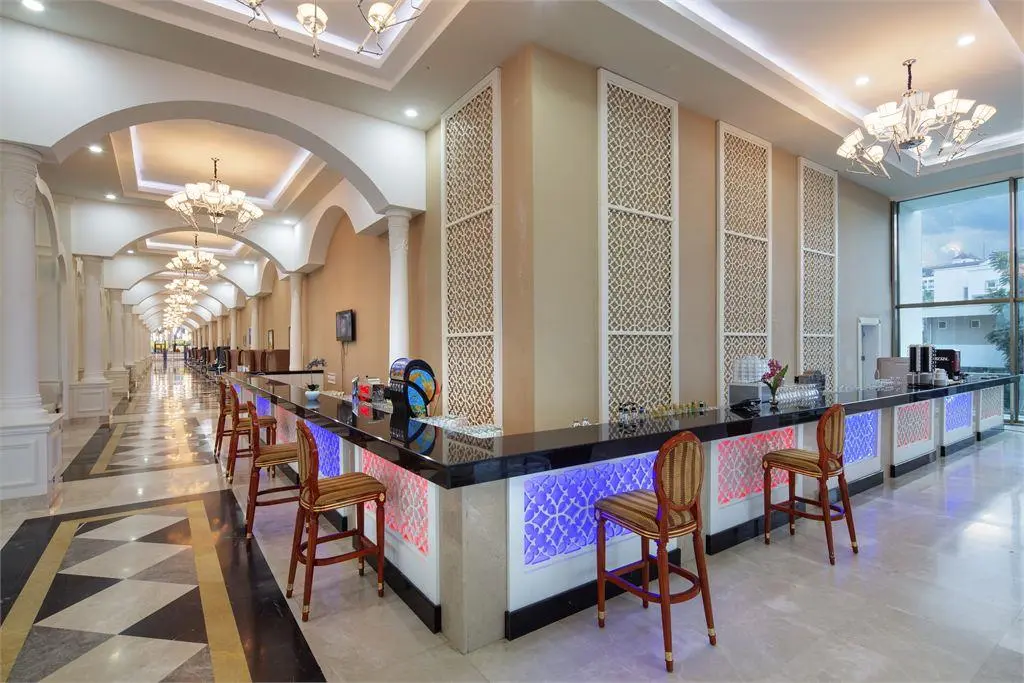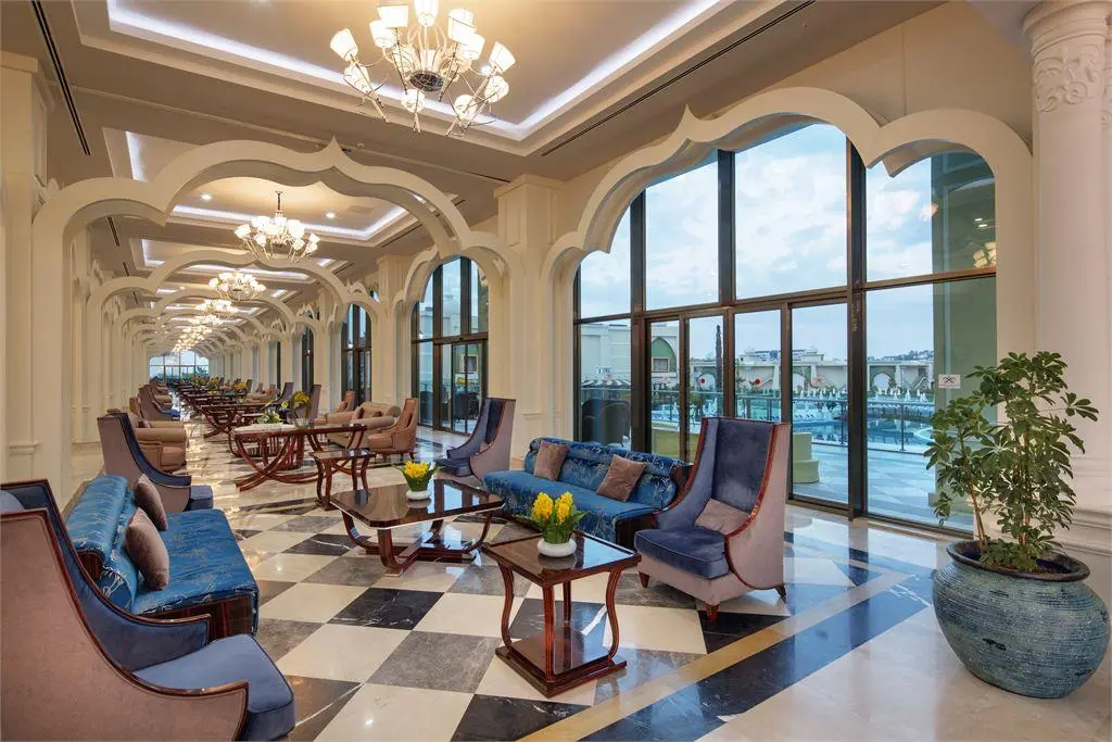 В концепцию входит: завтрак, обед и ужин - шведский стол, поздний завтрак, снэк, гезлеме, разнообразные закуски и мороженое в определенные часы, полночный суп, диетическое меню, местные и некоторые импортные алкогольные и безалкогольные напитки (10.00-02.30).