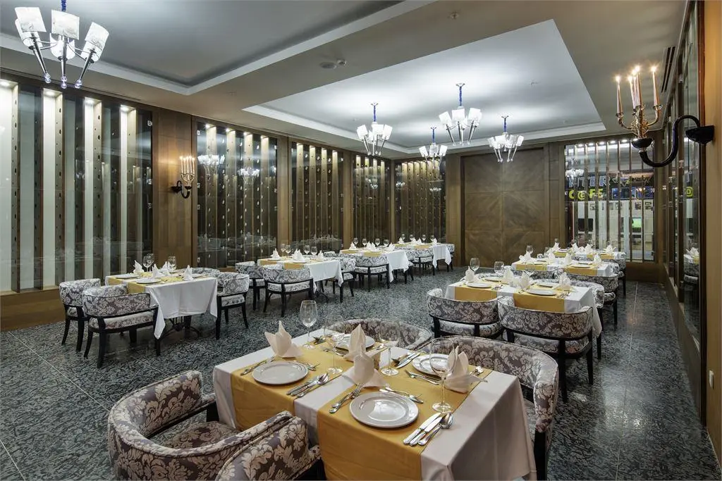 - Рестораны a la carte: 3 (итальянский, турецкий, рыбный, – по предварительной записи; за неделю проживания посещение одного из ресторанов – бесплатно)