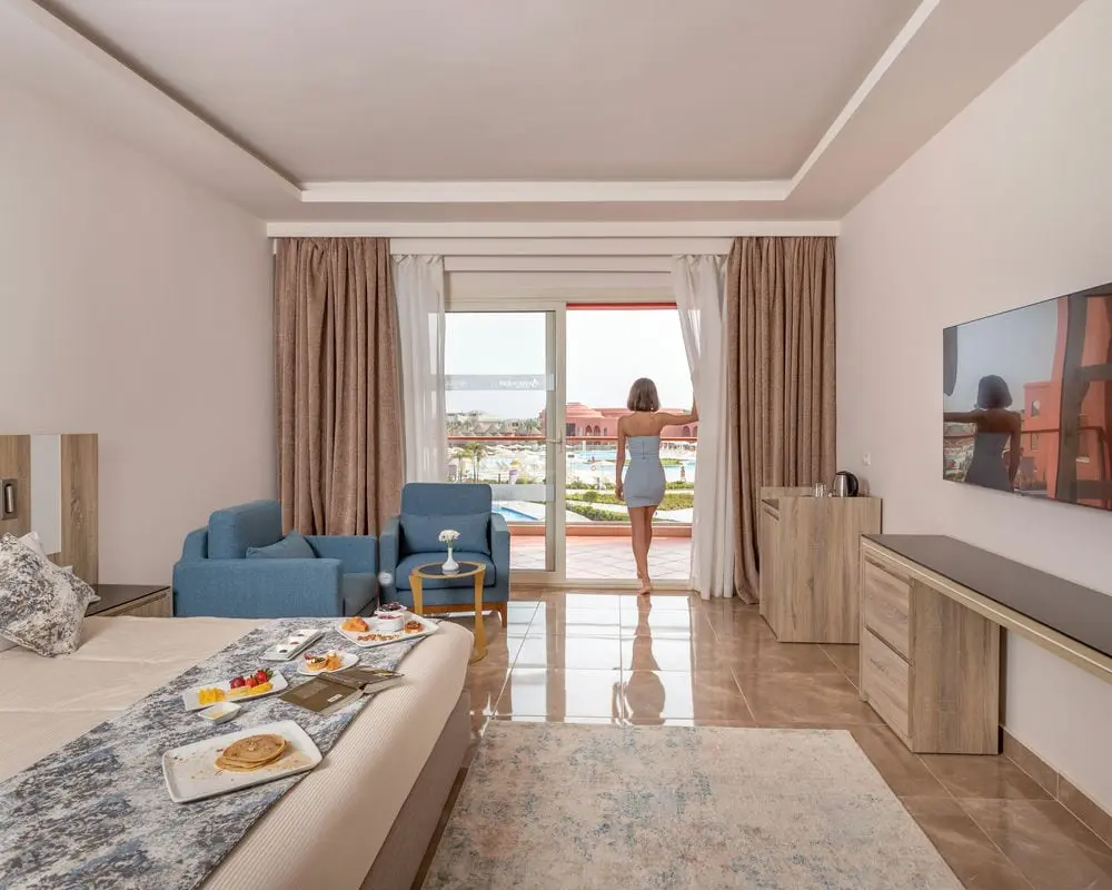 Royal Suite (Pool / Side Sea View, 85 м²; 2 спальные комнаты с зоной отдыха, кухонный уголок, терраса)