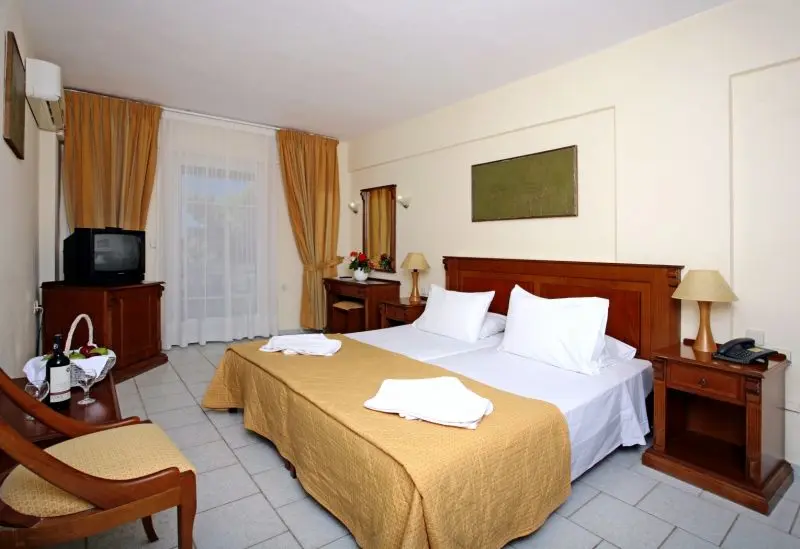 тип кровати - двухспальная или TWIN (односпальные кровати), дополнительная кровать - диван, спутниковое телевидение (российские каналы), холодильник, телефон, WiFi (платно), сейф (18 евро в неделю), индивидуальный кондиционер, фен (по запросу, на ресепшн), туалет, ванная комната, балкон или терраса.
