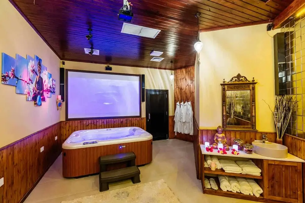 Небольшая внутренняя зона отдыха на первом этаже с 27-дюймовым телевизором со светодиодной подсветкой и 8 англоязычными каналами.