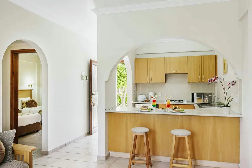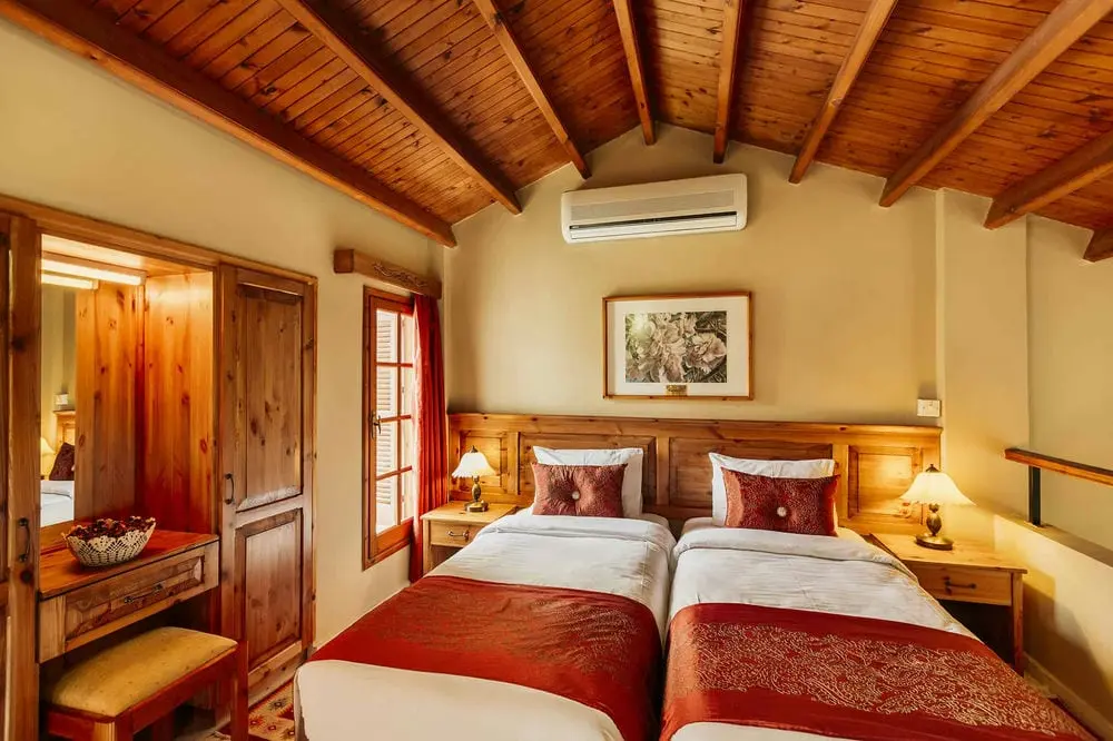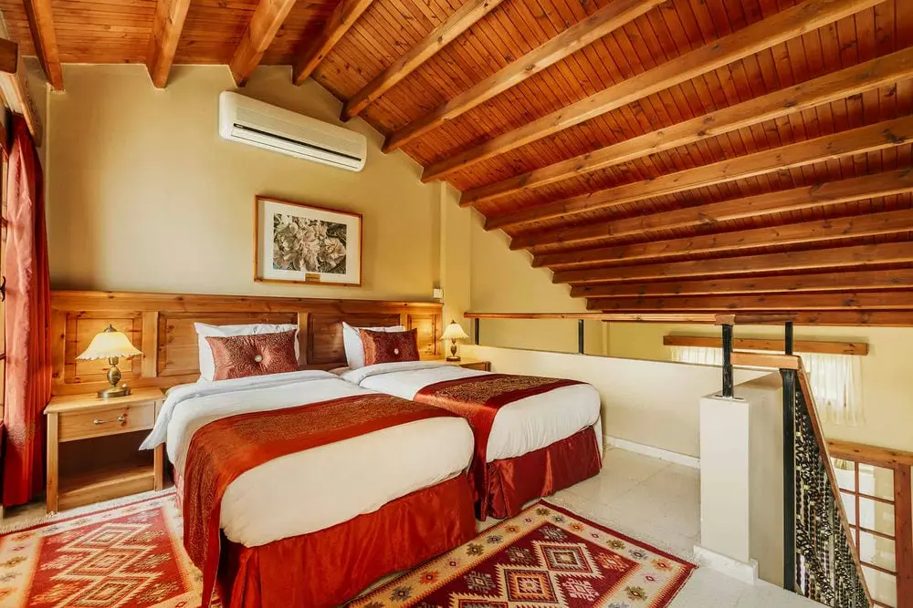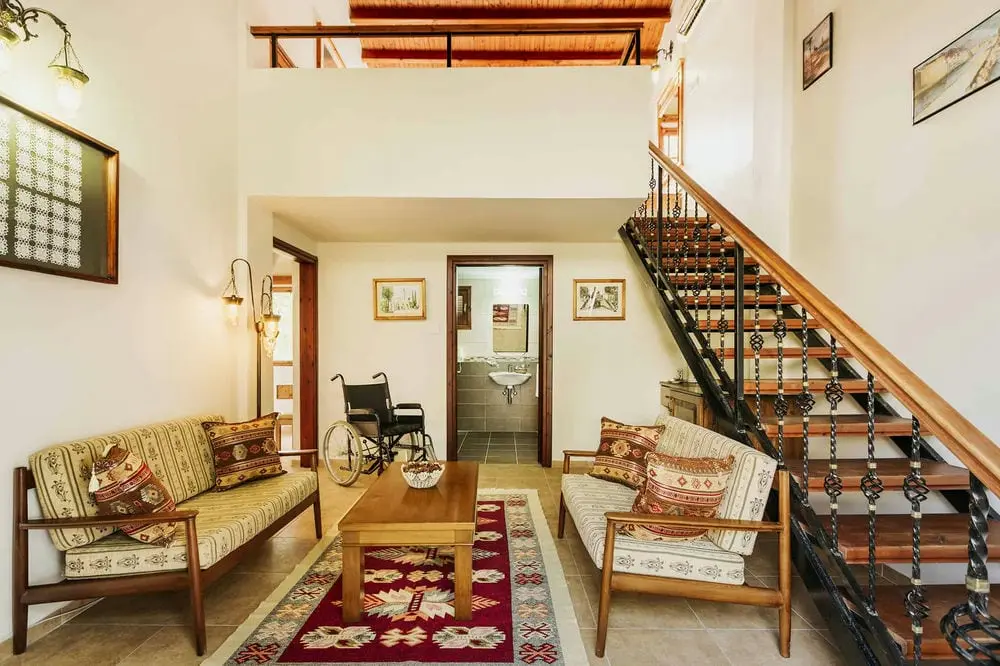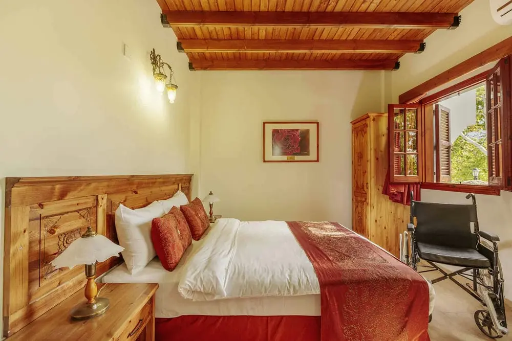 Каждая вилла имеет спальню на первом этаже двойной высоты, из которой открывается вид на спальню в мезонине. В них есть небольшой крытый гостиный уголок, а также просторная частная терраса с видом на прекрасно ухоженный бассейн и пышные сады, обеспечивающие огромное спокойствие, где вы можете побаловать себя обслуживанием номеров. Все они искусно оформлены в традиционном кипрском стиле с деревянными потолками, коваными и деревянными лестницами, а также современными удобствами. Картины местных художников и кружева ручной работы, выполненные владельцами, дополняют их уникальную атмосферу. Эти виллы спроектированы как наиболее подходящие для гостей с небольшими трудностями при ходьбе из-за спальни на первом этаже, а также для семей с маленькими или взрослыми детьми.