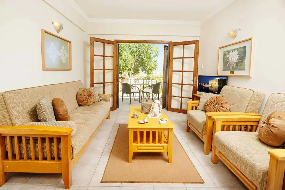Эти двухквартирные коттеджи на первом этаже (один уровень) аккуратно расположены между прекрасно ухоженными ландшафтными садами, наслаждаясь великолепным горным пейзажем и далеким видом на Средиземное море. Они оформлены с использованием современных и традиционных линий с картинами местных художников и кружевами ручной работы владельцев. Они состоят из 1 или 2 спален на первом этаже, отдельной гостиной, одной душевой комнаты и собственного, хорошо меблированного балкона с видом на красивые сады кактусов и с далеким видом на море. У них также есть свои собственные входные террасы с живописным видом на гору Кирения с пятью пальцами. Обе балконы и террасы обеспечивают невероятное спокойствие, где вы можете воспользоваться нашими услугами по обслуживанию номеров. Они расположены в отдельной зоне от других помещений, что добавляет им уединения и доступно по небольшому мосту, ведущему из бассейна. Эти коттеджи предназначены для семей и гостей с небольшими нарушениями ходьбы, а также для пар, ищущих дополнительного комфорта и пространства.
