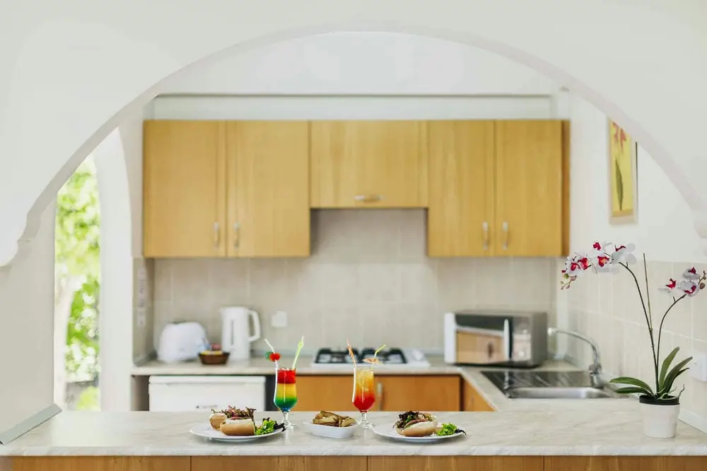 Доплата за самостоятельное питание - за дополнительную плату номера этого типа также предоставляют гостям возможность самостоятельно готовить еду, готовить еду и совершать местные покупки, имея при этом полный доступ ко всем удобствам отеля. Это дополнение включает мини-кухню с дополнительными удобствами, такими как микроволновая печь, духовка, 4-х конфорочная плита, тостер, столовые приборы, кастрюли, сковородки, посуда и столовые приборы, а также стандартные удобства с холодильником и чайником с принадлежностями для чая / кофе.