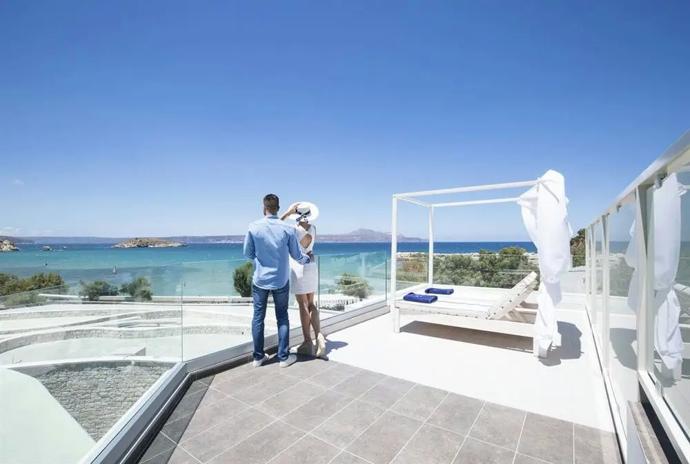Suites Εxecutive Loft/Ground Floor/GV (~26-28 кв.м) Двухуровневая сюита. На нижнем уровне – диван, на верхнем (без двери) – двуспальная кровать.