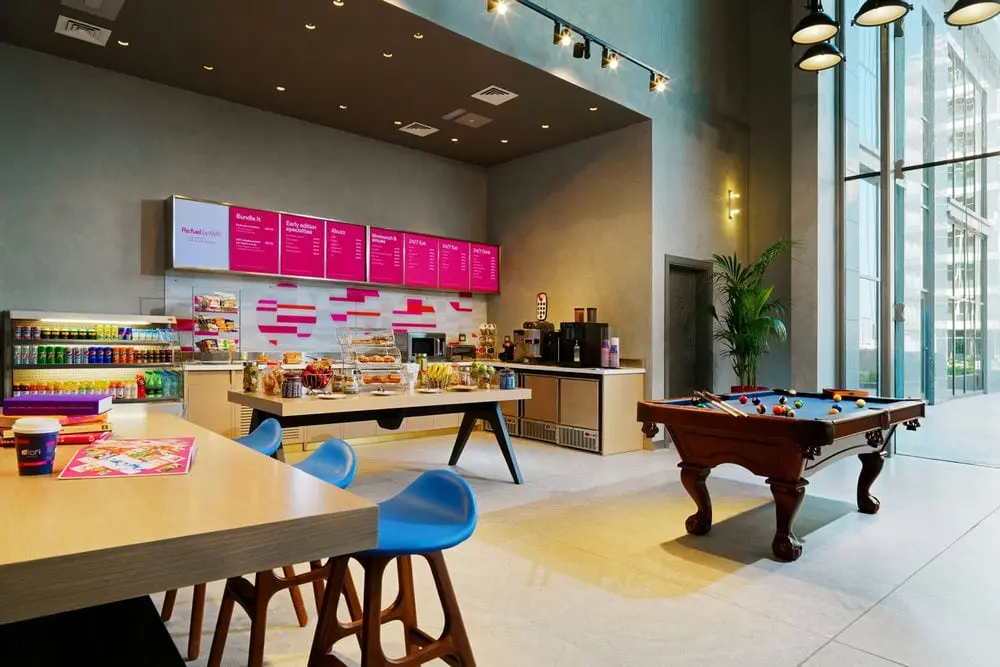 Re:fuel by Aloft℠ - круглосуточная закусочная с самообслуживанием, расположенная в вестибюле на первом этаже, предлагает разнообразные блюда, а также персонализированные варианты напитков.