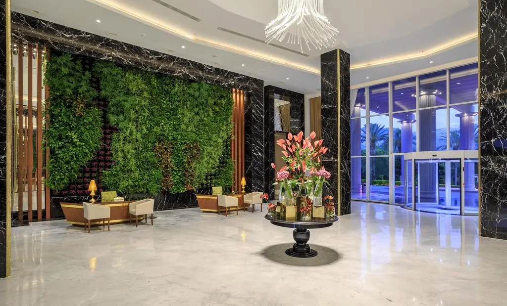 Отель состоит из шести 4-этажных зданий. Общая площадь 107 000 м2.