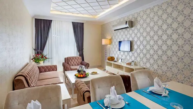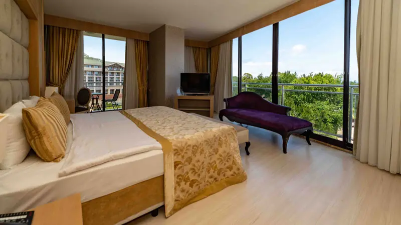 Отель предлагает 394 номера с кондиционером, макси-баром, сейфом, телевизором со спутниковыми каналами. В ванных комнатах есть глубокие ванны, бесплатные туалетные принадлежности, халат и тапочки. Бесплатный Wi-Fi доступен на всей территории отеля. Завтрак, обед и ужин с широким выбором изысканных блюд подают в формате «шведского стола». В главном ресторане, разделенном на несколько различных зон, есть детский уголок с отдельным «шведским столом», а также диетический «шведский стол» и терраса на открытом воздухе.