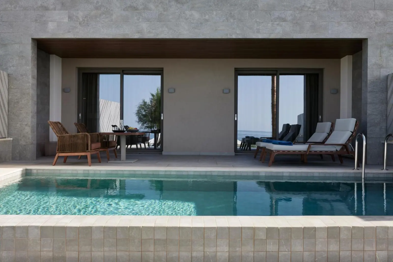 Роскошный люкс с прямым видом на море и собственным частным бассейном. Включает отдельную гостиную зону, кондиционер, мини-бар, сейф, балкон или террасу и бесплатный Wi-Fi.