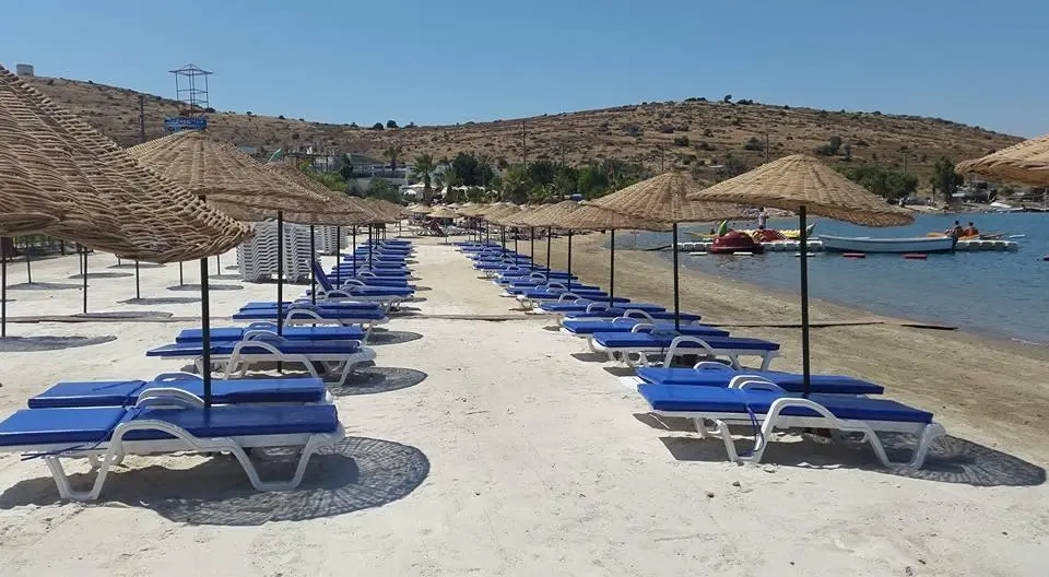 в 35 км от аэропорта и в 2 км от центра Бодрума, в местечке Гюмбет, в 50 м от городского пляжа.