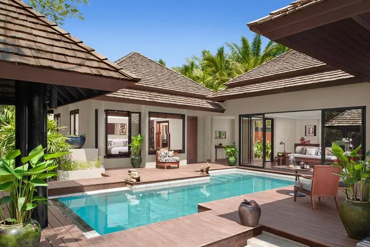- Sala Pool Villa (220 кв.м., спальня, двуспальная кровать, ванная комната, терраса из лиственных пород дерева, сала под открытым небом с собственным тропическим садом, бассейн)