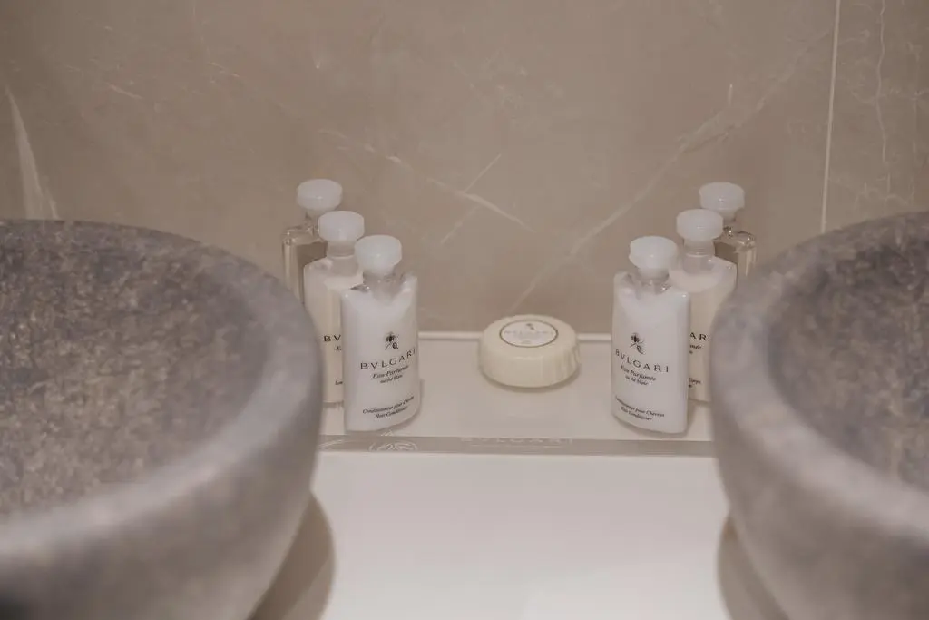 Deluxe Villa: 365м2, просторная терраса с видом на море, собственный бассейн с шезлонгами, 3 спальни с французскими кроватями, гостиная, полностью оборудованная кухня, 3 ванные комнаты с ванной и душем, обденный стол с барбекю (обслуживается шеф-поваром по запросу), частный гараж на 2 машины, кондиционер, ТВ, Wi-Fi, мини-бар (платно), сейф, фен. Максимальное размещение – 6 человек.