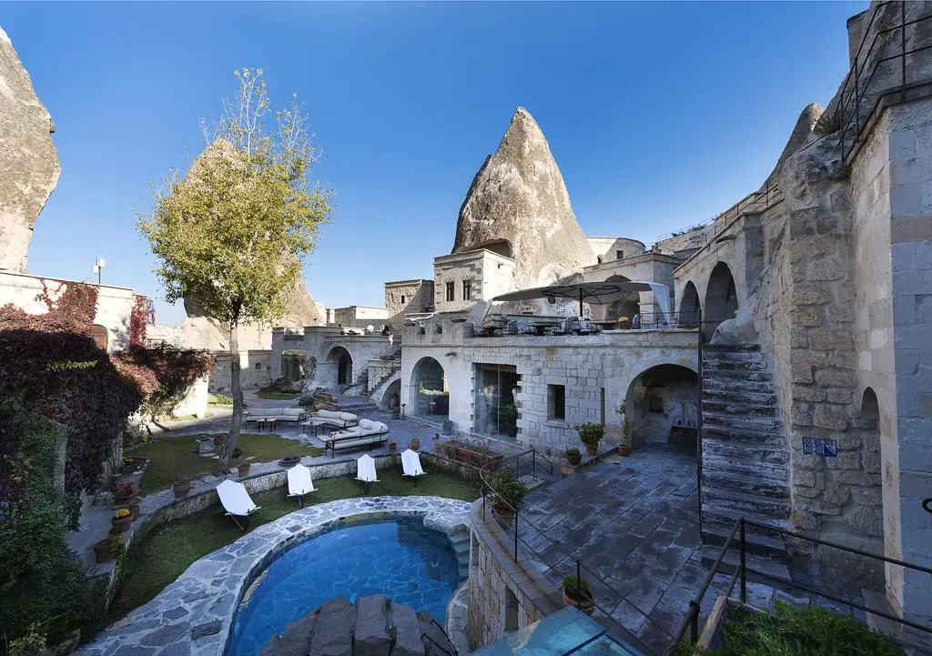 Отель Göreme Anatolian Houses - Art Concept расположен между 8 природными «каминами фей» и высечен прямо в скале, что характерно для каппадокийской архитектуры. Интерьеры оформлены с использованием исторической плитки, глиняных горшков, старинных футляров — всего насчитывается более 500 древних артефактов. К услугам гостей высеченный в скале открытый бассейн и крытый бассейн в стиле античных римских терм. В саду бесплатно разливают белое и красное вино. На территории есть бесплатная частная парковка. Подключен бесплатный Wi-Fi.