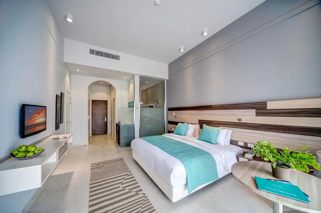 Junior Suite — 56 кв.м., однокомнатный номер, разделен раздвижной дверью на две зоны: спальную и гостиную. В спальной зоне предоставляется одна двуспальная кровать или две односпальные кровати. В гостиной зоне — софа и оборудованная кухня.