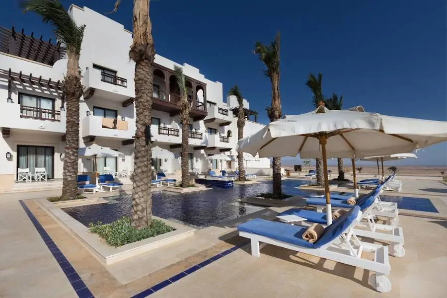 Отель стоит на возвышенности в районе великолепной египетской ривьеры близ побережья Красного моря, откуда открывается прекрасный вид на море, поле для гольфа, лагуны и прибрежные горы. Гостей ждет сочетание удобств отеля и апартаментов.