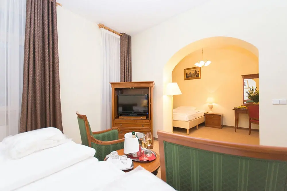 Triple Standard (14 номеров) - площадь номера 22 - 27 м2, трехместный номер, двухэтажный или двухкомнатный номер, макс. 3 взрослых (2 человек на главной постели + 1 человек на дополнительной кровати или 3 человека на главных постелях), ванная комната с ванной или душевой кабиной, вид во внутренний двор или на улицу Садовую, возможность номера с балконом