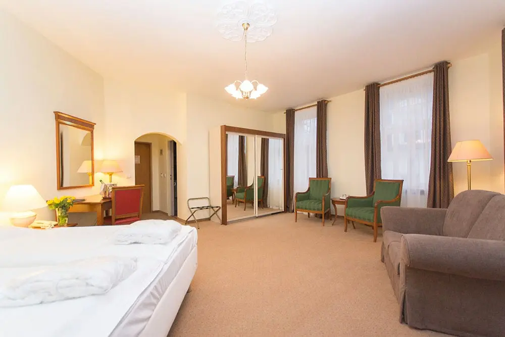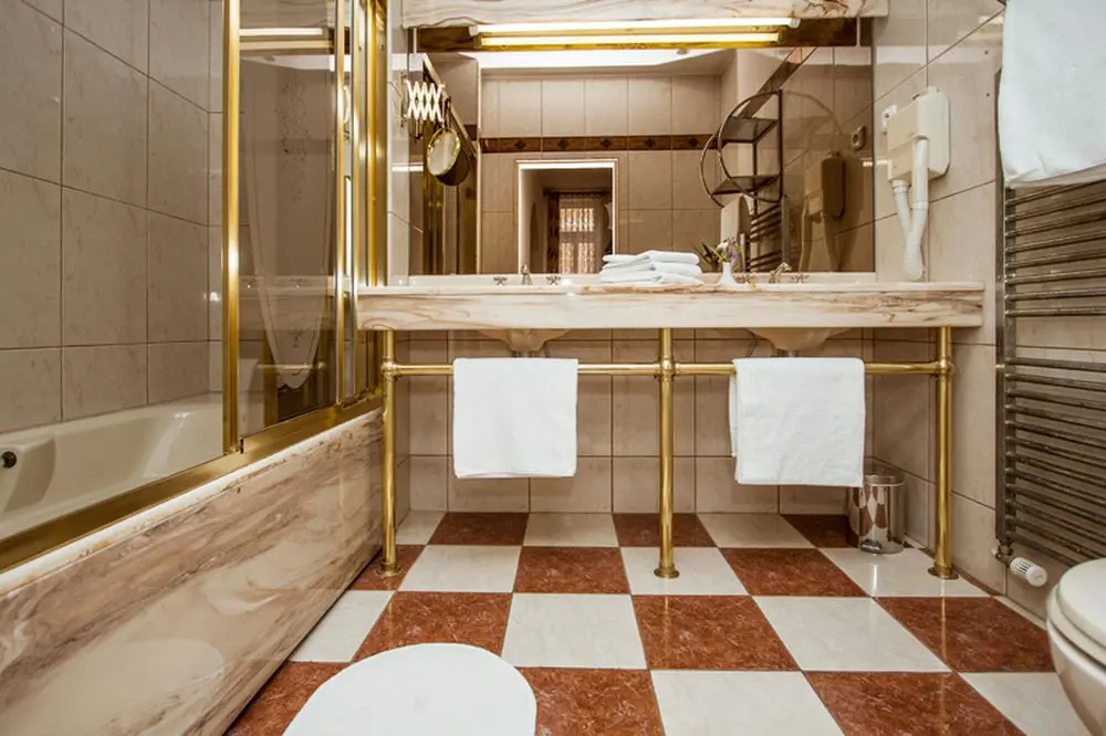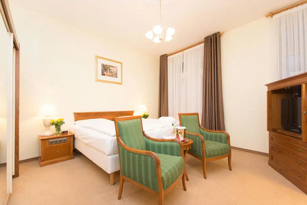 В номере: мебель из древесного массива, ванна/душ, спутниковое TV, русские программы, телефон, сейф, фен, гигиенические средства (гель для душа, мыло), набор для чаепития, холодильник, халаты и тапочки для гостей с лечением, бесплатный WI-Fi доступ в Интернет.