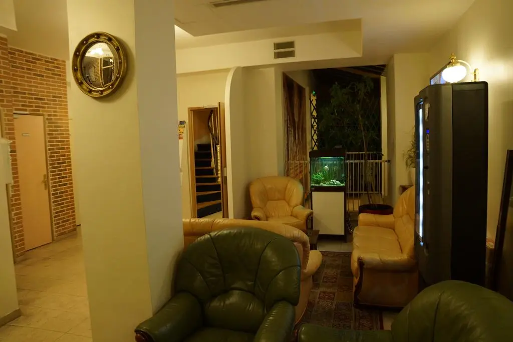 Также в холле находится автоматическая машина с безалкогольным напитками и шоколадом (за дополнительную палту), бесплатная кофе-машина (кофе, горячий шоколад, чай) и интерактивный информационный терминал.