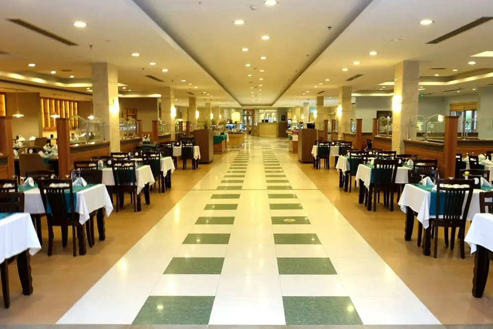 В концепцию входит: завтрак, обед, ужин - шведский стол, поздний завтрак, ночной суп закуски-сладости, снэк, мороженое - в определенные часы, круглосуточно местные алкогольные и безалкогольные напитки. Питание и напитки в аквапарке - платно.