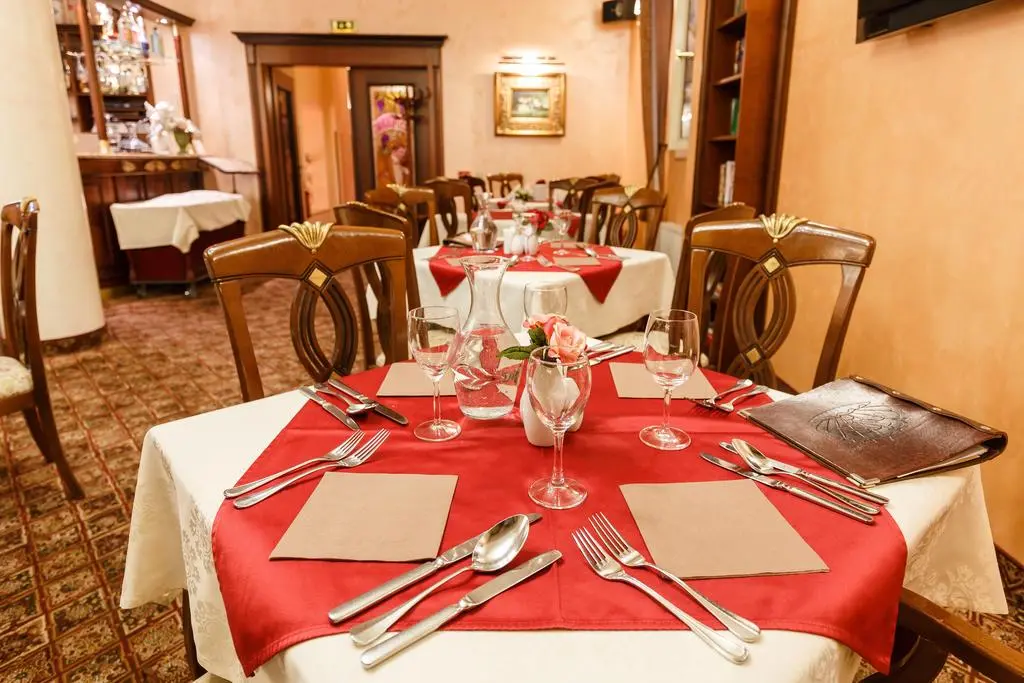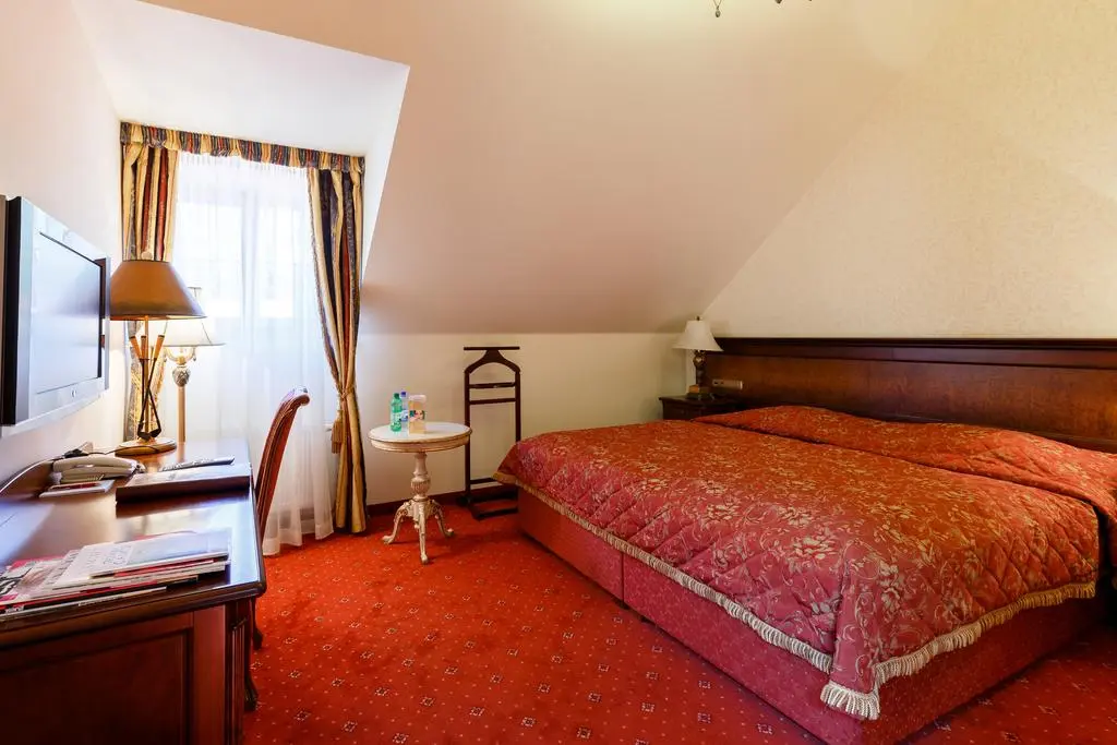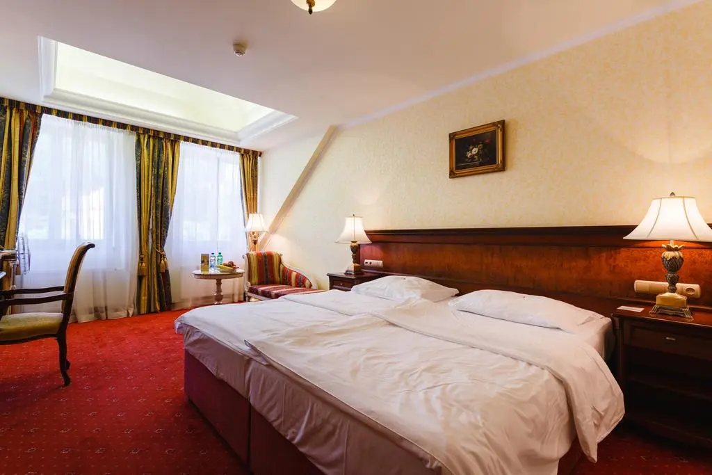 В номере: индивидуальный регулятор тепла, мини-бар, широкоформатным LCD телевизор и спутниковым телевидением с русскоязычными каналами, сейфом, матрацами класса «люкс», автоматический выключатель электричества, телефон, Wi-fi нтернет, фен, душевой кабина или ванна. Номера с видом во двор оборудованы мебелью производства всемирно известной итальянской компании «SCAPINI». В номерах с видом на колоннаду - авторская мебель, изготовленная чешскими художниками и мастерами из американской вишни.