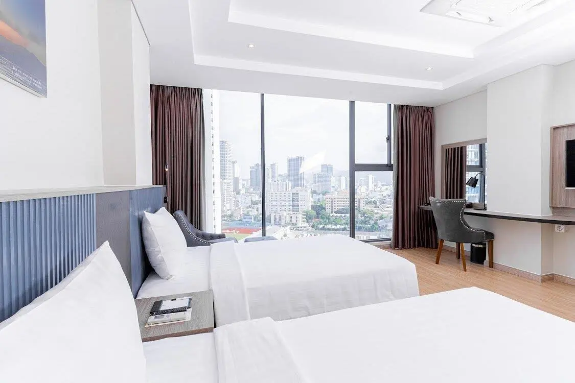 Deluxe CV (3-8й эт.)/Deluxe SV (9-16й эт.) - 30-32 м², макс. 3 чел. | без балкона, 2 односпальные кровати, ванная комната с душевой