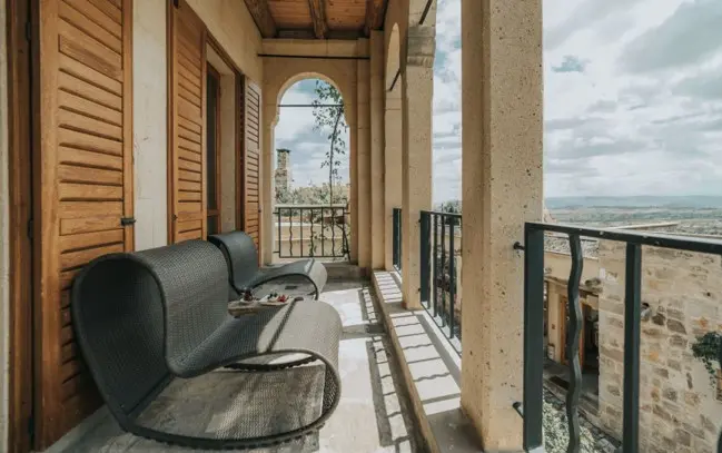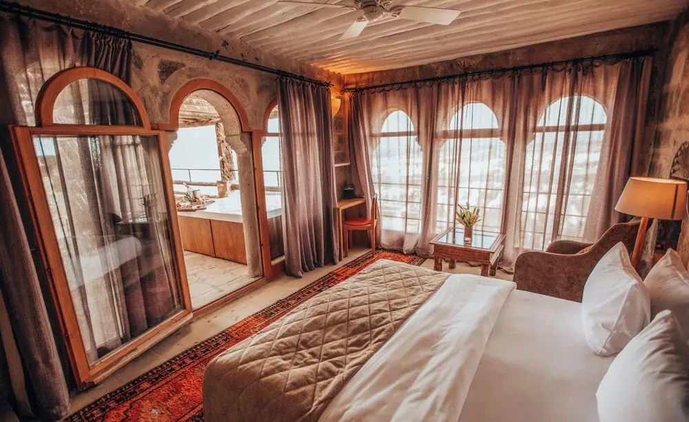 Tiraz Jacuzzi Suite (112 м2, вид на гору Эрджиес и Долину голубей, двуспальная кровать, частный бассейн, джакузи, частная турецкая баня, терраса, гостиная);