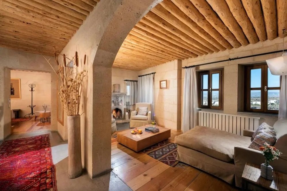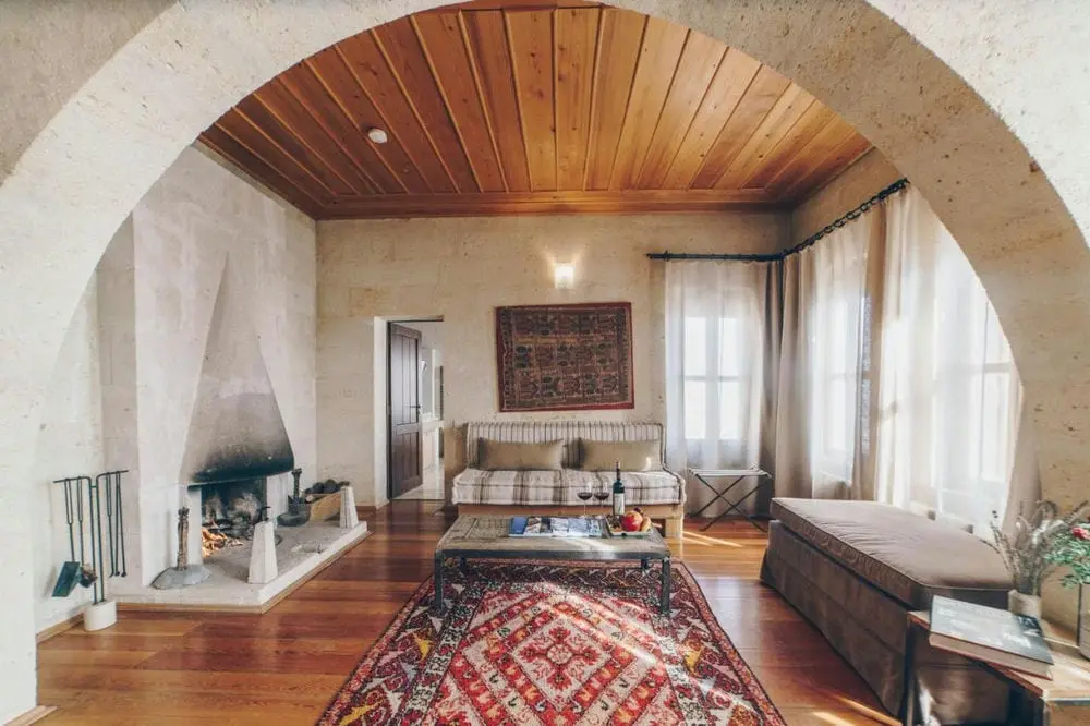 Suite (50-107 м2, пещерный номер, двуспальная кровать, сад, терраса, камин, гостиная);