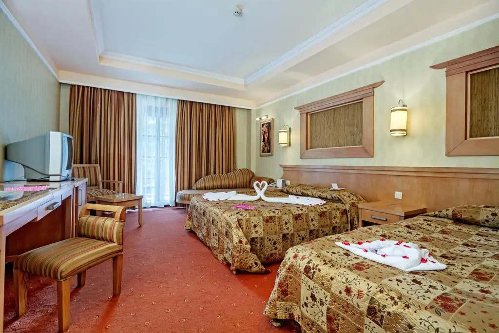 380 standard room (макс. 2+2 чел., 23 м2).Описание номера: сейф: в номере: платно, смена белья: 3 раза в неделю, кондиционер: индивидуальный, уборка номера: ежедневно, телефон, пол: керамическая плитка (или ковровое покрытие), балкон или французский балкон, фен: есть, русских каналов: 1, мини-бар бесплатно (прохладительные напитки в день заезда), ванна или душ, телевизор: есть