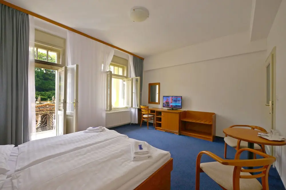 В номере: ванная комната с ванной или душем, туалет, телефон,радио, холодильник, телевизор, кабельное телевидение, русские каналы - РТР планета, фен. Пользование сейфом на рецепции отеля включено в стоимость проживания.