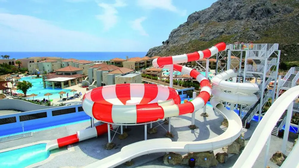 Аквапарк рядом с отелем - бесплатно для гостей отеля. Аттракционы: космическая лодка, черная дыра - рафтинг, камикадзе, свободное падение, водная горка с тремя дорожками, турбо копье). Есть ограничения по возрасту и росту - на больших горках минимум 1,2 м, от 12 лет; детские "джунгли" от 4 до 12 лет; секция для малышей - от 8 месяцев до 4 лет.