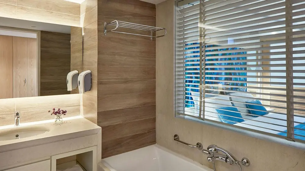 В номере: Подарок по приезду (бутылка минеральной воды), Холодильник, Спутниковое телевидение (32"), Фен, Сейф, Балкон/Терраса (терраса с шезлонгом), Ванна, доп.кровать - Диван - кровать (2 дополнительные одноместные кровати), Центральный кондиционер, индивидуально контролируемый, Wi-Fi интернет, Приборы для приготовления чая и кофе, Душ, Тапочки, Халаты, Кофе-машина (Nespresso).