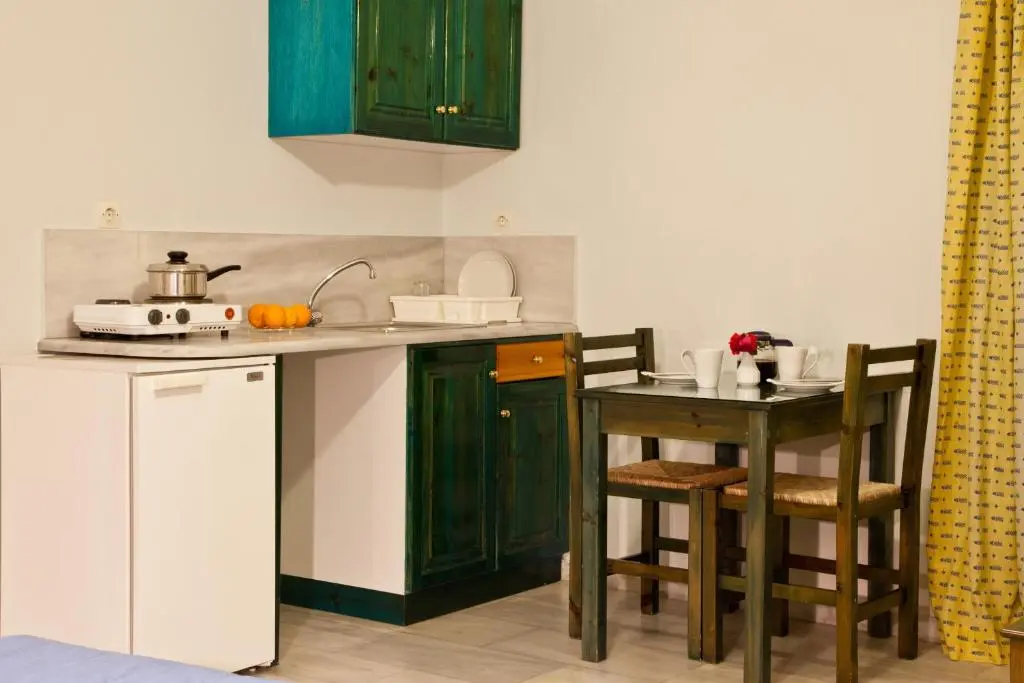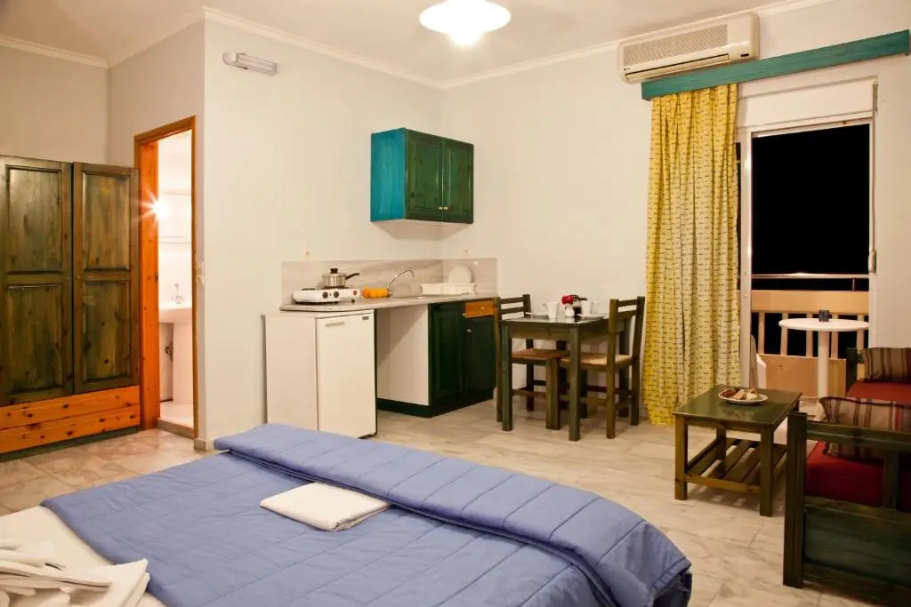 Номера-студио оснащены кондиционером, диваном-кроватью и мини-кухней с мини-холодильником. Собственная ванная комната с душем и бесплатными туалетно-косметическими принадлежностями. С балкона открывается частичный вид на море.