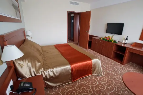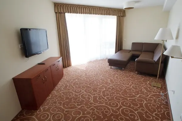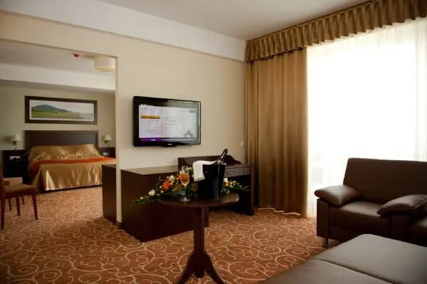 Двухкомнатный номер, состоит из гостиной и спальни. C красивым видом, с балконoм и кондиционером воздуха. Номер имеет собственный джакузи. Могут разместиться до 4 человек. Площадь: 48-52м2. Удобная кровать, 2 LCD телевизор, телефон, мини бар, сейф, проводной и WIFI доступ в интернет. В ванной комнате фен, косметическое зеркало, основные туалетные принадлежности, банные халаты и полотенца.