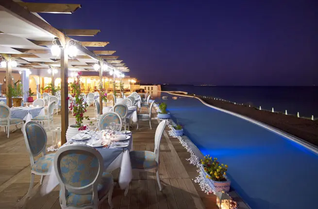 a la carte | Часы работы: 12.30-23.00 / ежедневно | Тип кухни: Cредиземноморская/Греческая рыба | Кондиционирование | Дресс-код: мужчинам старше 12 лет рекомендуется носить длинные брюки или джинсы за ужином | Для некурящих