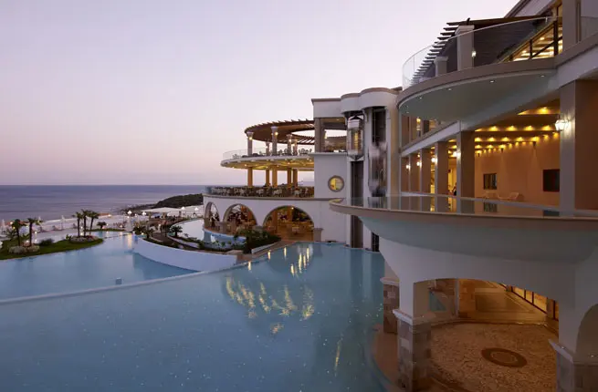 Впрочем, отель Atrium Prestige Thalasso Spa Resort and Villas способен удивить не только этим. Среди его «фишек» наличие вида на море из подавляющего большинства номеров, расположение части зданий прямо в скале, созданной самой природой, собственная часовня, которая подойдет, в том числе, и для бракосочетаний.