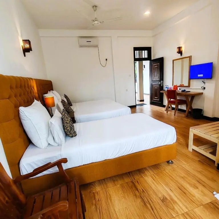 • Оснащение: 1 двуспальная или 2 односпальные кровати, кондиционер, ТВ, мини-холодильник, сейф (платно), Wi-Fi